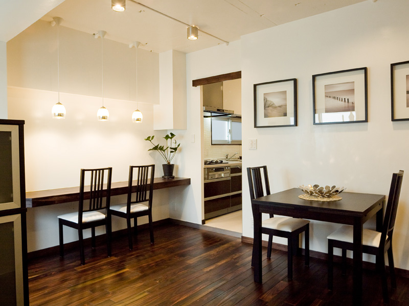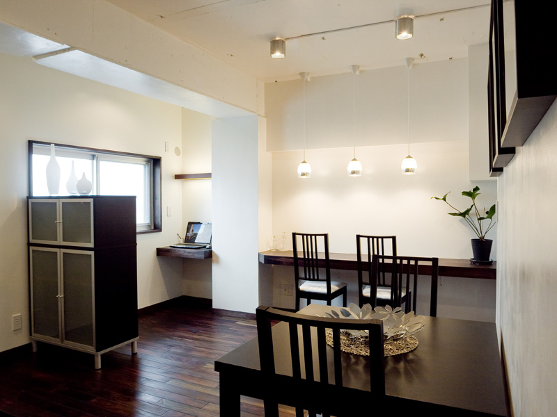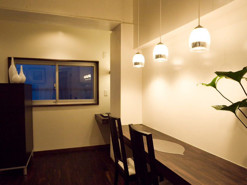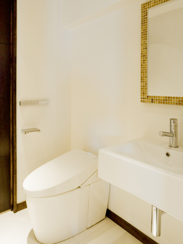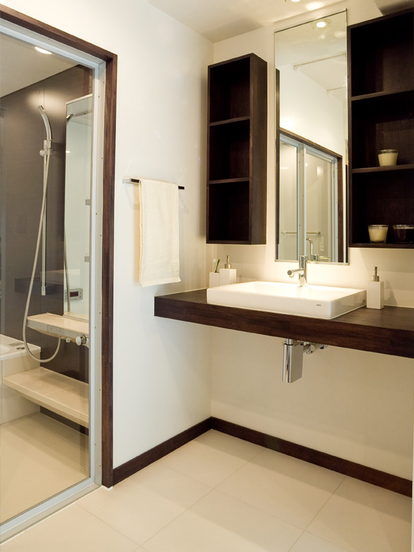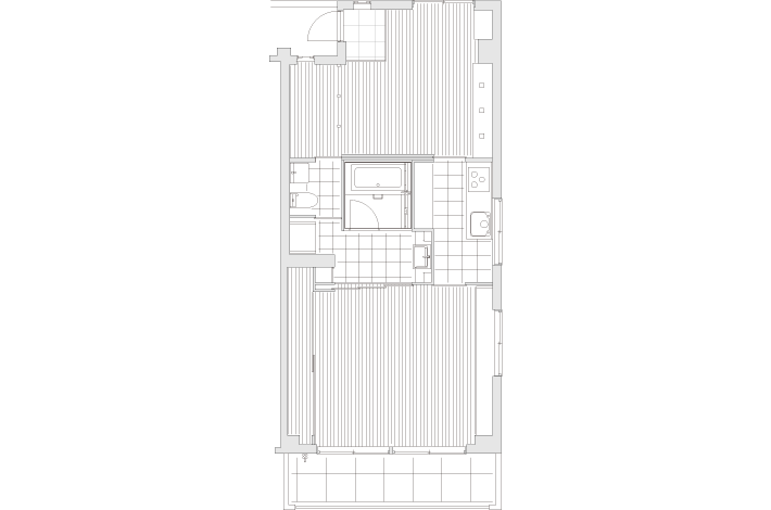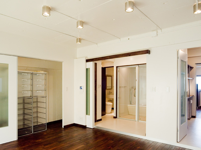部屋の中心を水周りで区切ったONとOFFの切り替えが楽しい部屋。