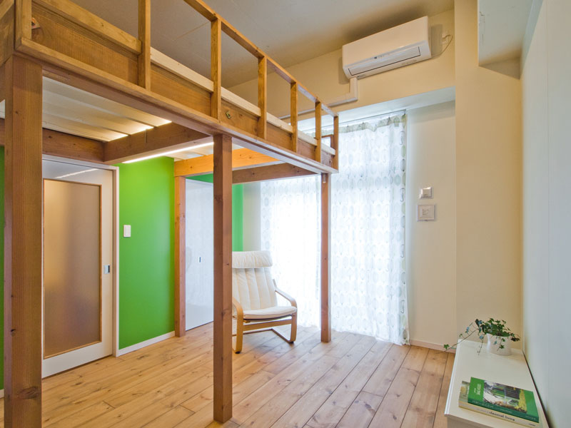 | 仕様 | オリジナルデザイン・木質ロフト組み・無垢材フローリング(木部/無公害塗料オスモオイル仕上げ)・塗装壁・一部家具小物付 | ||