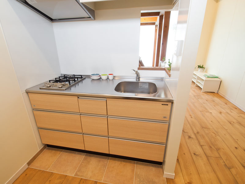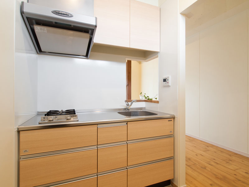 キッチンや水周りを一つの場所にコンパクトにまとめて、可能な限り生活スペースを大きくとった部屋です。